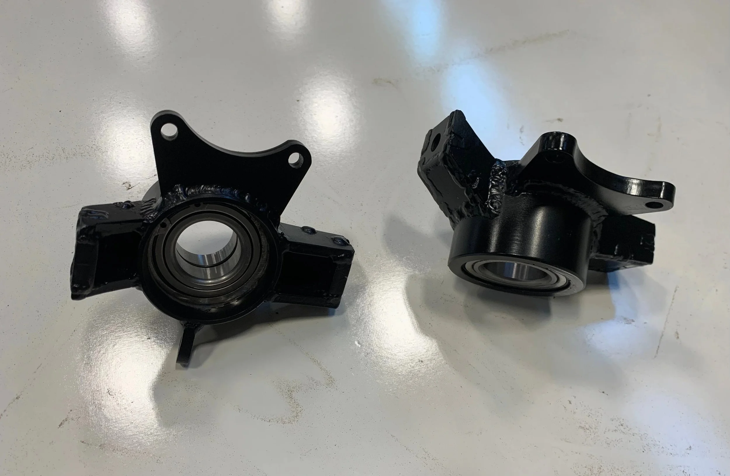The manufacturing process began with machining a central steel component on a lathe, which serves as the main hub of the knuckle and houses the bearing that supports the wheel hub. Once complete, suspension mounting tabs were accurately positioned around the central piece using a 3D-printed welding jig to ensure consistent geometry. The tabs were then TIG-welded in place, creating a rigid assembly with precise suspension pickup point locations. This approach combined the accuracy of CNC machining with the flexibility of welded fabrication, resulting in a knuckle that is both durable and repeatable to produce.
